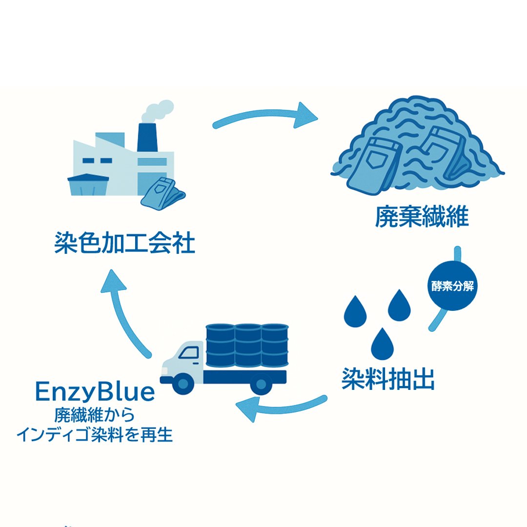 サーキュラーエコノミーな「EnzyBlue」の製造工程。