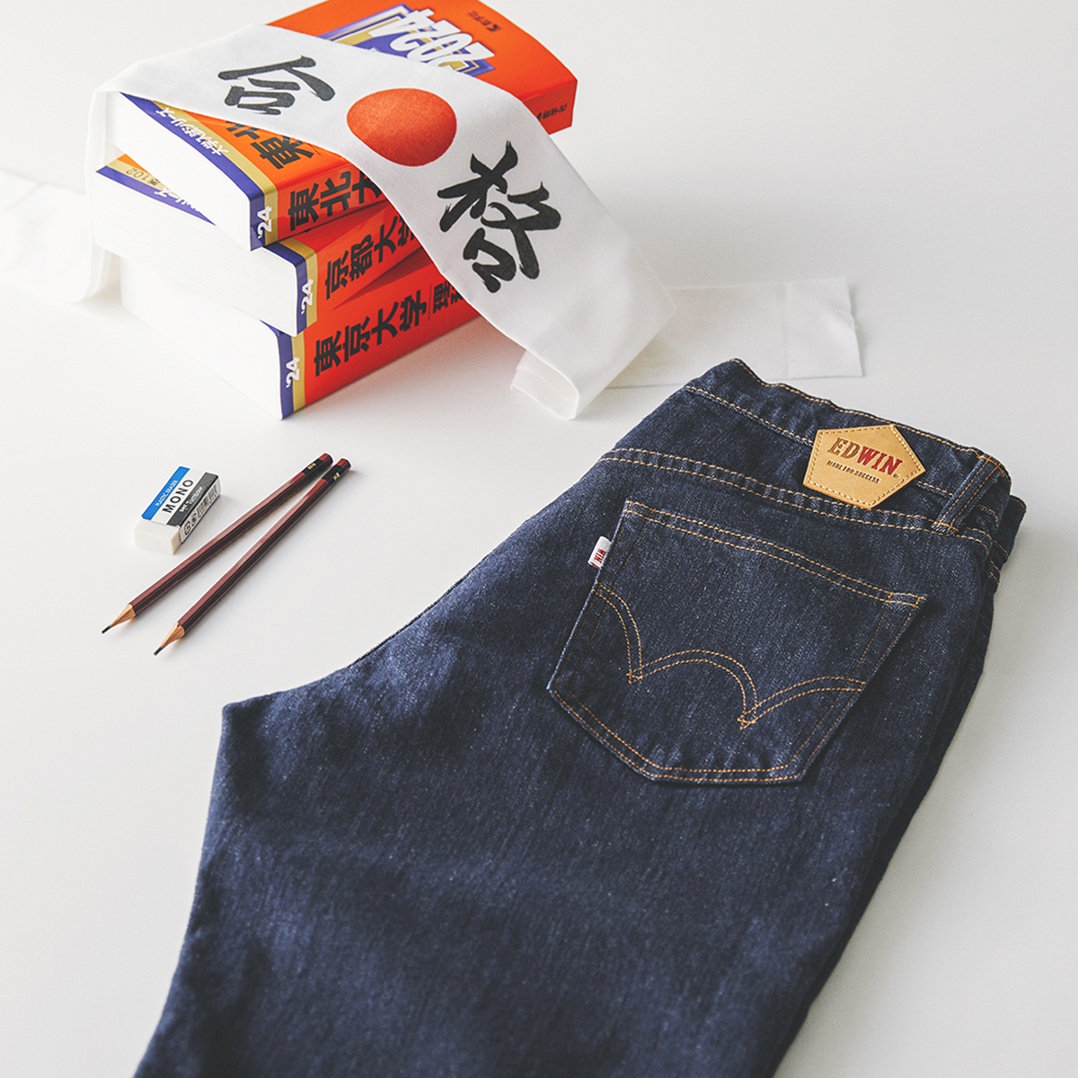 「験(ゲン)担ぎ」という日本ならではの文化・風習をエドウイン流に解釈した受験生のためのジーンズ。
